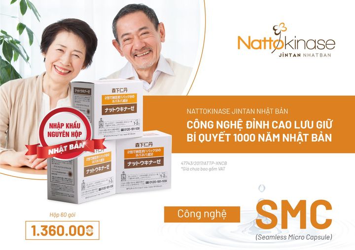 “Nên sử dụng sản phẩm Nattokinase nguồn gốc từ NHẬT BẢN, có công nghệ SMC (Seamless Micro Capsule) với màng bọc kép và lớp màng siêu bảo vệ giúp bảo vệ Nattokinase gần như nguyên vẹn, an toàn đi qua môi trường axit dạ dày, xuống thẳng ruột non – nơi mà enzym NGẤM TRỰC TIẾP vào máu để phát huy tác dụng “khơi thông huyết mạch, bổ não khỏe tim”.