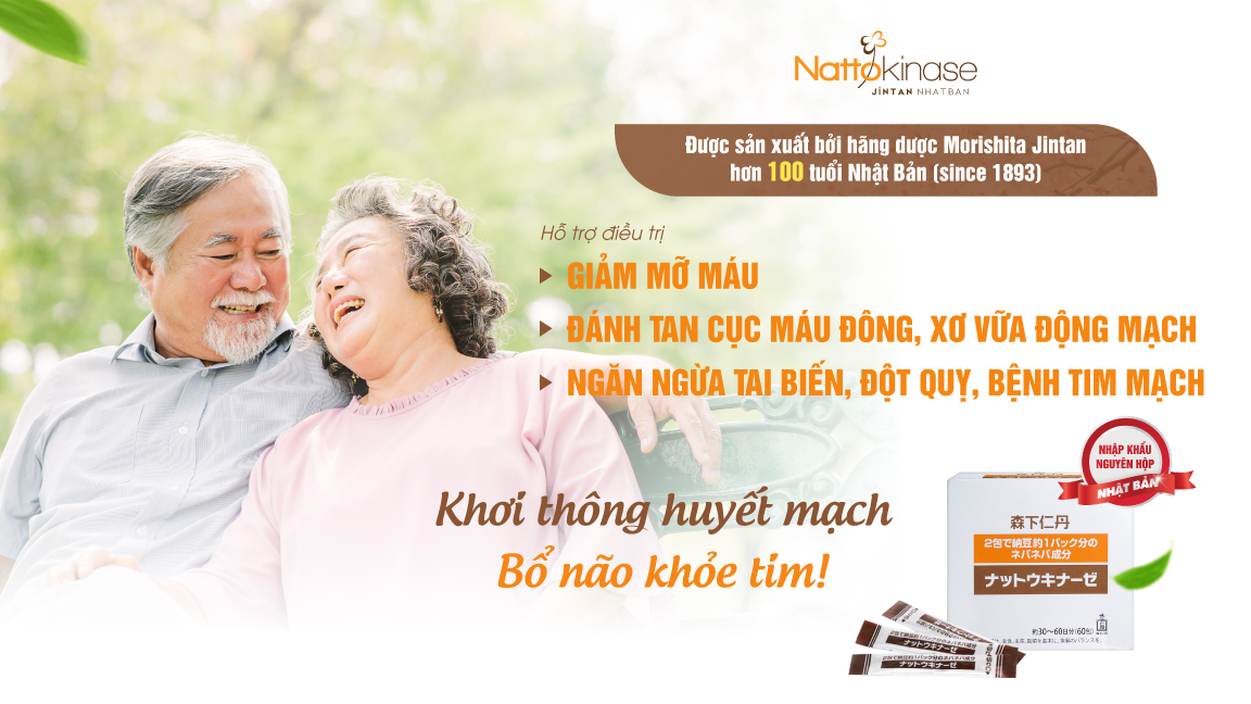 Sản phẩm của hãng dược phẩm Morishita Jintan tuổi đời 130 năm. 100% tự nhiên với bột chiết xuất nuôi cấy bởi vi khuẩn nato (đậu nành lên men): 100mg ( chứa natokinase 2.000FU) nên không có tác dụng phụ. Rất tốt cho nhóm: